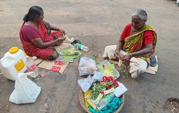 Crafting Livelihood: Weaving Flower Garlands on the Street